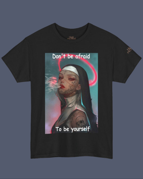 This isn't just a t-shirt; it's a statement. The "Don't be afraid to be yourself" tee is a powerful symbol of freedom and individuality. Featuring a unique graphic, this shirt encourages you to embrace your true self and stand out from the crowd. Made from 100% heavy cotton, it combines style with ultimate comfort for all-day wear.